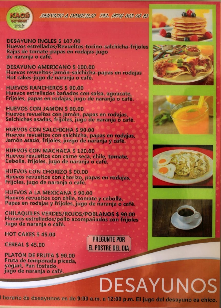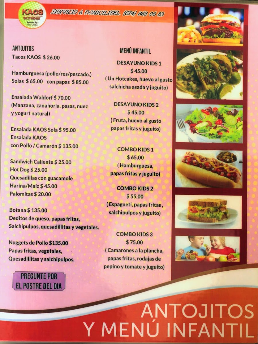 Welcome to KAOS RESTAURANT, a hidden gem located at C. Hidalgo 418 in Santa Catarina de Tepehuanes, Dgo., Mexico. The vibrant atmosphere and welcoming staff set the stage for an unforgettable dining experience. Customers rave about the delicious dishes, with portions designed to satisfy even the heartiest appetites.